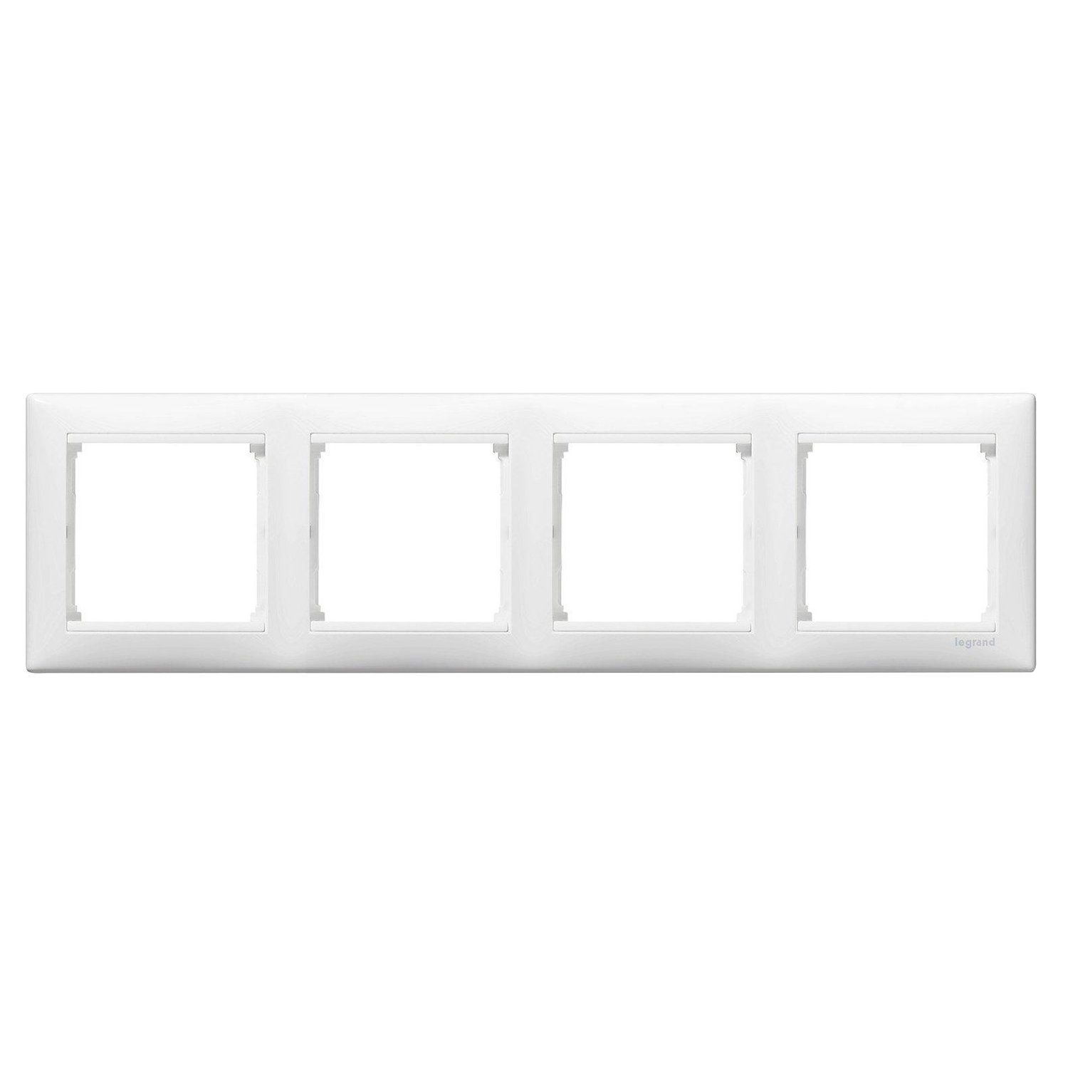 Четырехместная горизонтальная рамка, белая Legrand Valena 774454 изготовлена из ударопрочного термопласта стойкого к ультрафиолетовым лучам. Является простым и незаменимым приспособлением для скрытия и украшения механизма розетки, выключателя или любого другого прибора. Располагается рамка горизонтально.