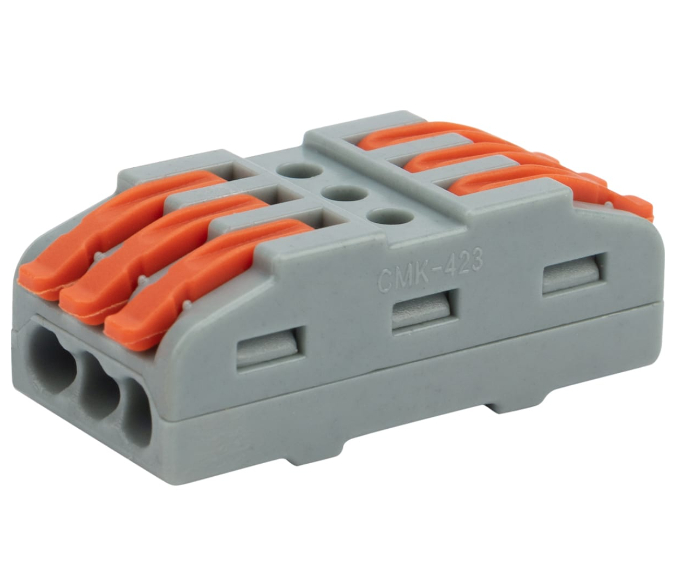 Специальное технологическое отверстие на корпусе клеммы предназначено для проверки соединения тестером-пробником или щупом мультиметра. Корпус из пластика делает контакт изолированным.