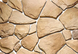 Декоративный фасадный камень с неровной плоской поверхностью и неправильной геометрией, похожий на песчаник.